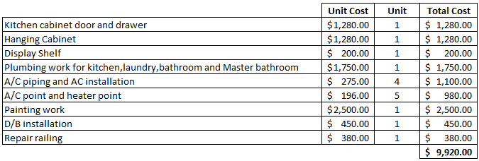 3rd Quotation from my usual contractor:5th Quotation from Kaodim.com as well as below: